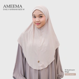 Ameema Daily Khimar menggunakan material Rayon Tencel terkenal dengan karakteristik permukaan kain yang lembut dan halus nyaman di kulit, mudah menyerap keringat, tidak panas dan ringan saat dikenakan.